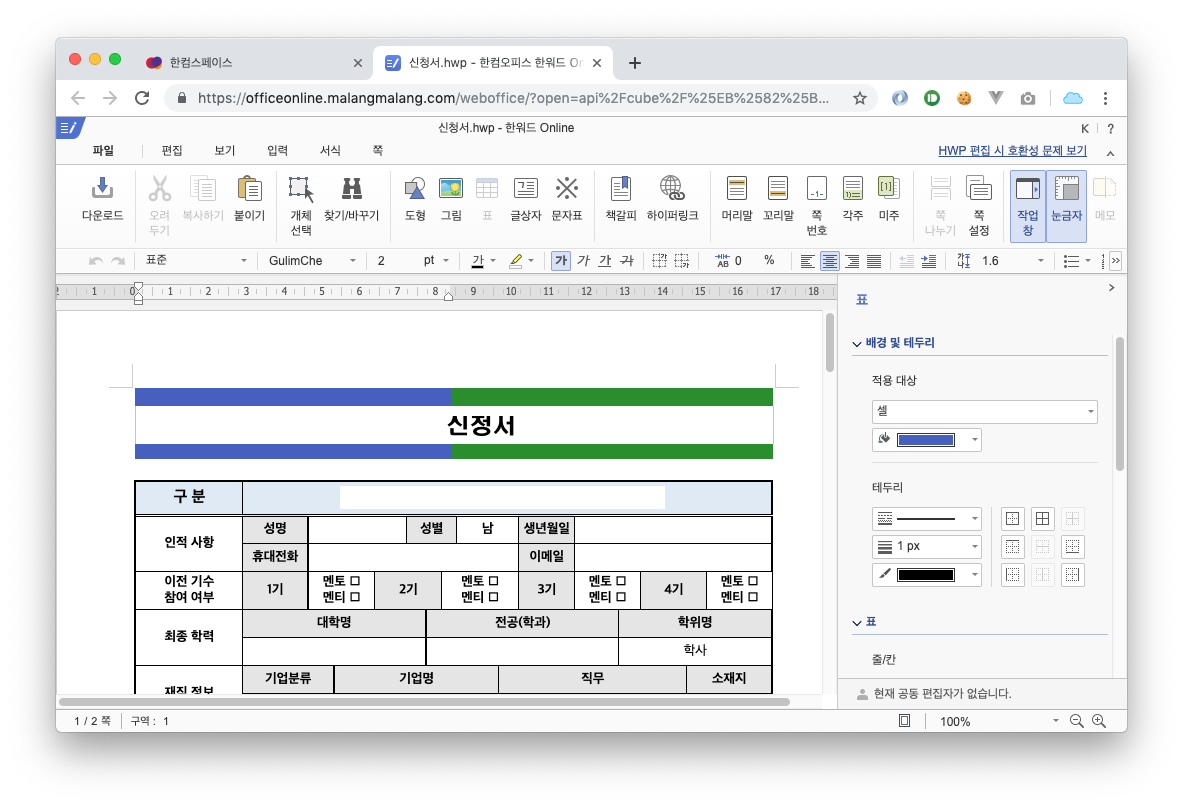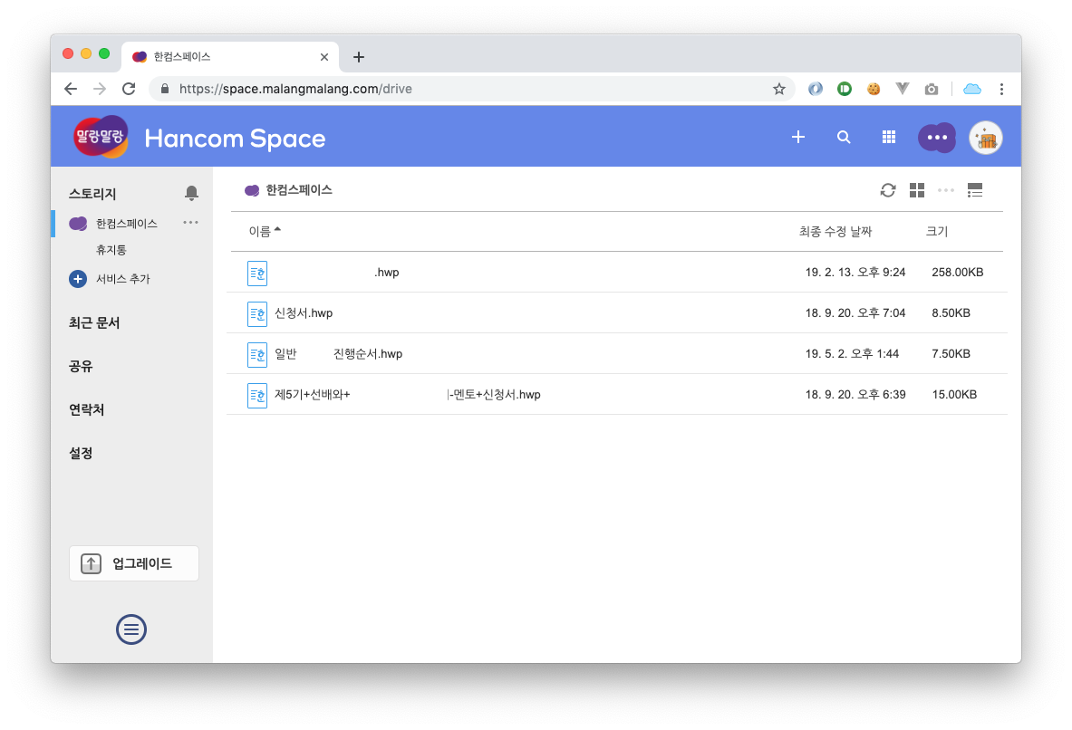 이런 hwp파일을 열고, 수정하고, 저장하려면 한글 sw를 반드시 구매해야하는데, HANCOM에서 운영하는 말랑말랑 Platform의 한컴스페이스를 사용하면 무료로 열고, 수정하고 저장할 수 있다.