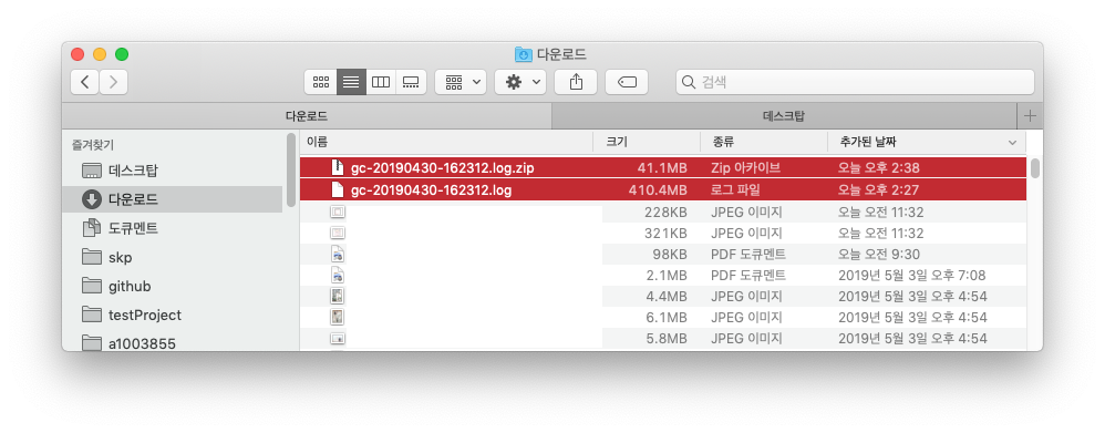 2. directory에 남긴 log를 추출하여 gceasy.io 사이트에 업로드한다.