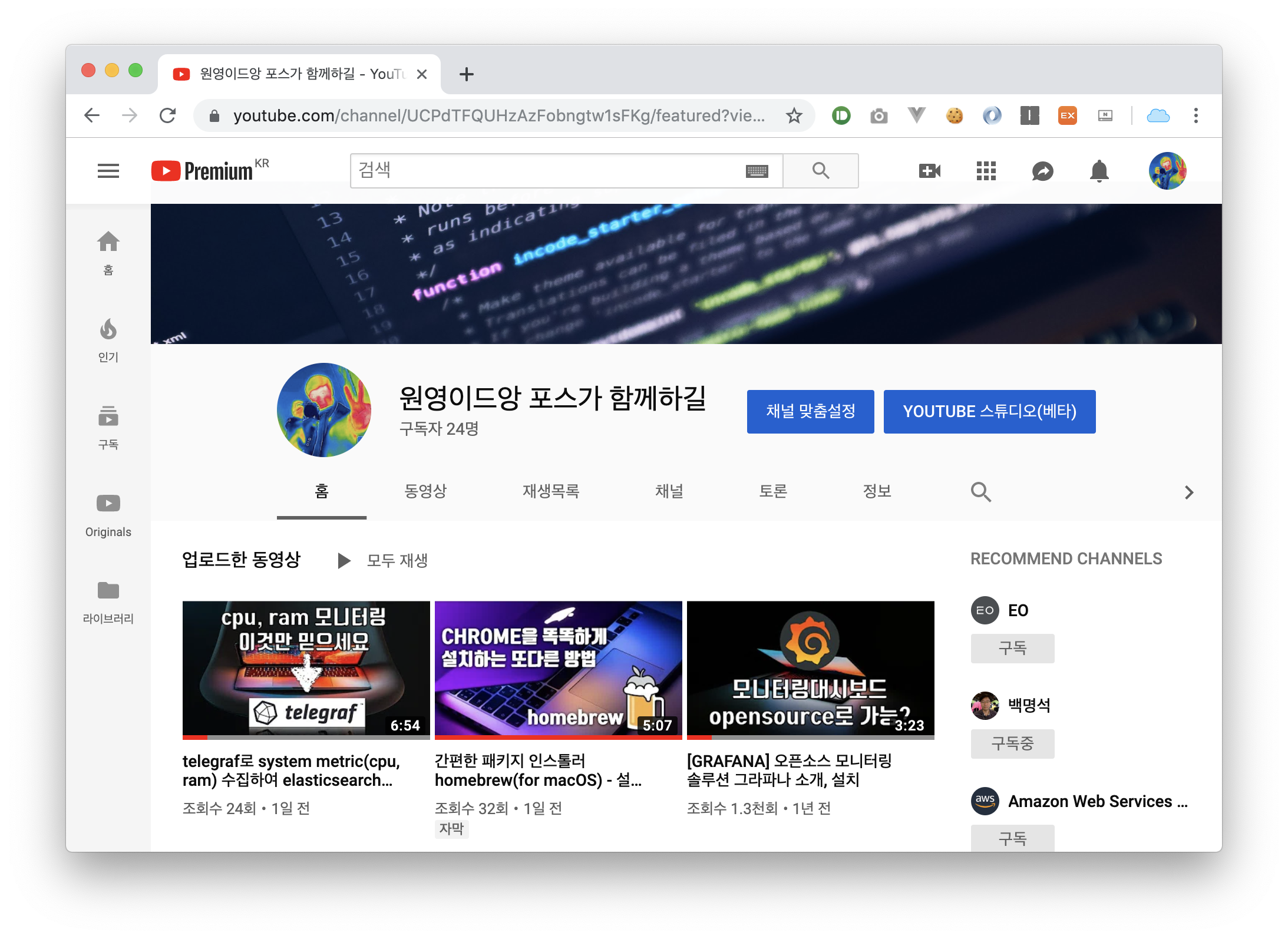 위 영상들이 유익하셨다면 제 채널 자주 놀러오셔서 많은 개발 지식들 얻고 가셨으면 좋겠습니다.