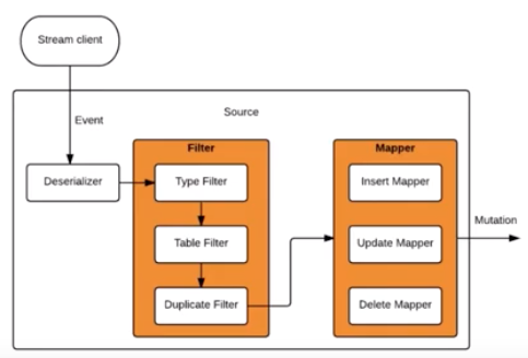 SpinalTap에서는 Event에 대해 Client service에서 처리가능하도록 filtering, Mapping처리를 통해 kafka로 data를 변환하여 produce한다.
