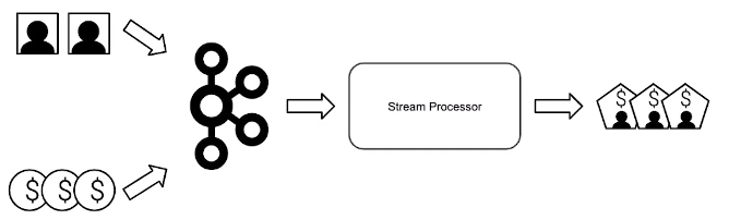 user정보와 결제 정보를 조합하기 위해서는 join이 필요하다. 이렇게 combining, joining하는 것을 Combining stream이라고 부른다. 이 때 user_id와 같은 조합할 어떤 key를 가지고 있는 경우 사용 가능하다. Combining은 windowing과 함께 사용하기도 한다.