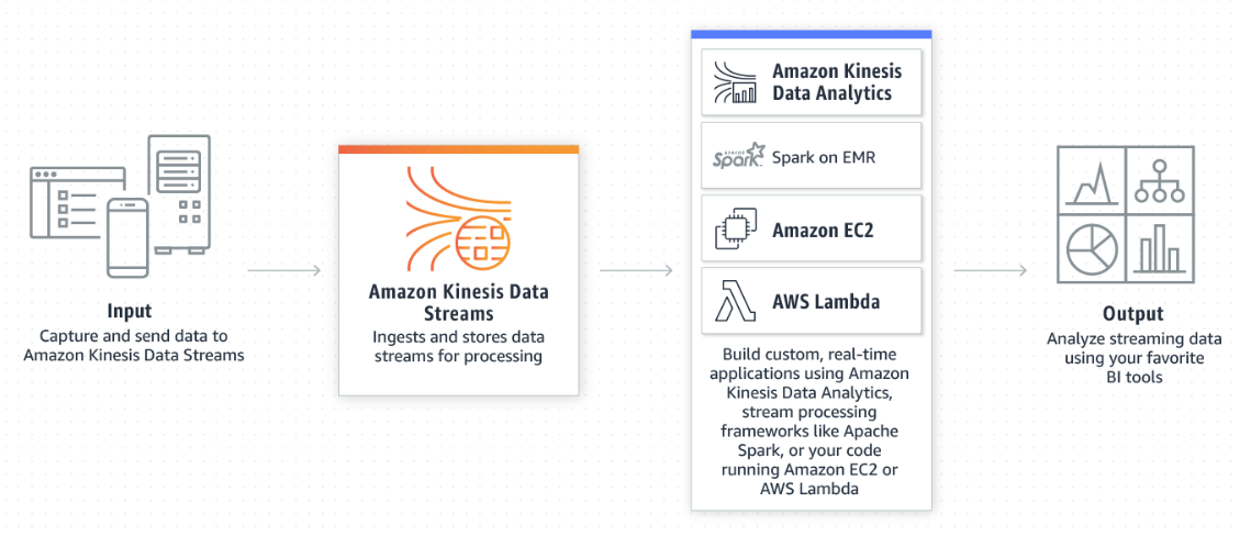 - Kinesis Data streams : 데이터 스트림을 캡쳐, 처리 및 저장