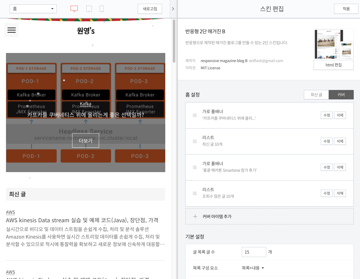 위와 같이 변경(혹은 다운로드) 하였으면 티스토리 블로그의 스킨편집으로 이동합니다.