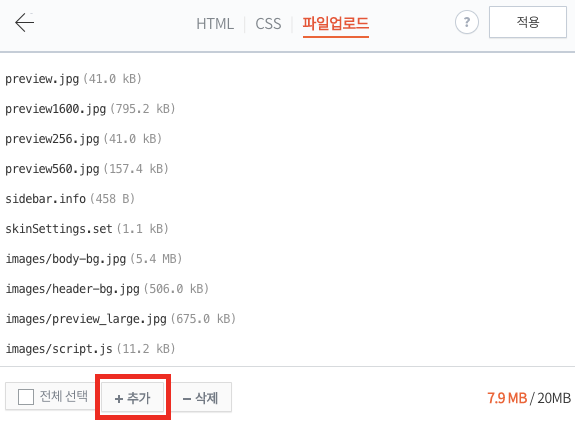 위와 같이 변경(혹은 다운로드) 하였으면 티스토리 블로그의 스킨편집으로 이동합니다.