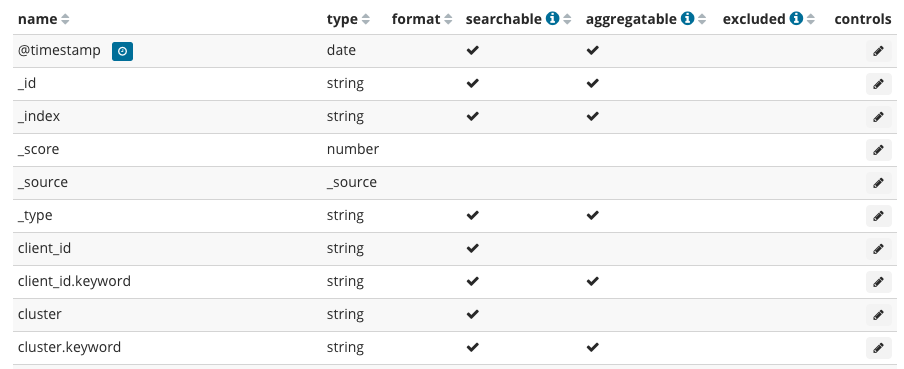 엘라스틱서치와 키바나를 사용하여 데이터를 조회하다보면 아래와 같이 index pattern이 색인되어 있는것을 종종 볼 수 있습니다. field명이 그대로 나타나는 경우와 field.keyword로 나타나는 경우 입니다.