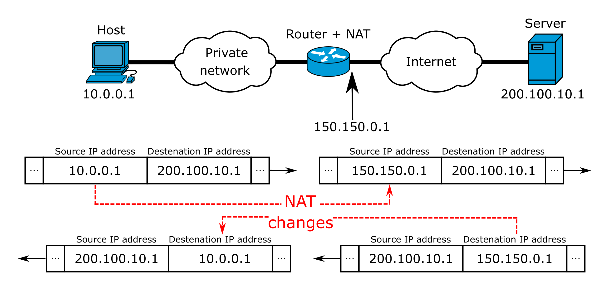 NAT는 Network Address Translation의 줄임말 입니다. NAT는 사설 네트워크에 속한 여러 개의 호스트가하나의 공인 IP 주소를 사용하여 인터넷에 접속하기 위해 사용합니다. 쉽게말해서 외부망과 내부망을 나눠주는 기능을 하게 되는 것입니다.
