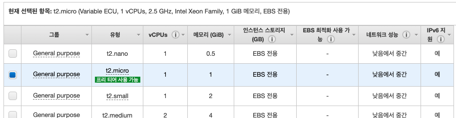 ec2는 aws에서 발급가능한 가상머신을 뜻합니다. 이번에는 테스트 목적의 머신이므로 Amazon Linux 2 AMI(Amazon Machine Image)를 t2.micro로 발급받습니다.
