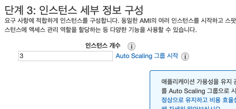 그리고 인스턴스 세부 정보 구성에서는 아래와 같이 인스턴스 개수를 3개로 설정합니다.