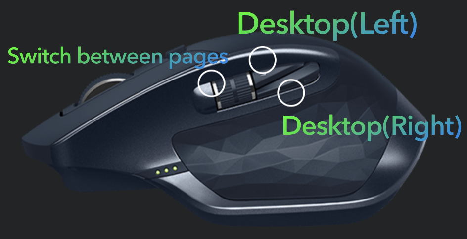 윗쪽 버튼을 Desktop(Left) 아랫쪽 버튼을 Desktop(Right) 버튼으로 설정하였습니다. 이 버튼을 통해 Mac OS에서 제공하는 멀티 Desktop화면을 손쉽게 좌측/우측 으로 옮겨다닐 수 있습니다. 개인적으로 Left버튼이 위쪽에 있는게 편했습니다.