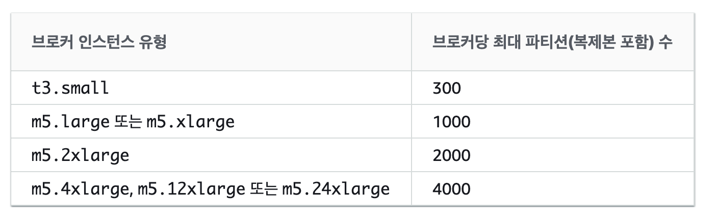 | 브로커 인스턴스 유형 | 브로커당 최대 토픽 수(replication factor 3 인 경우) |