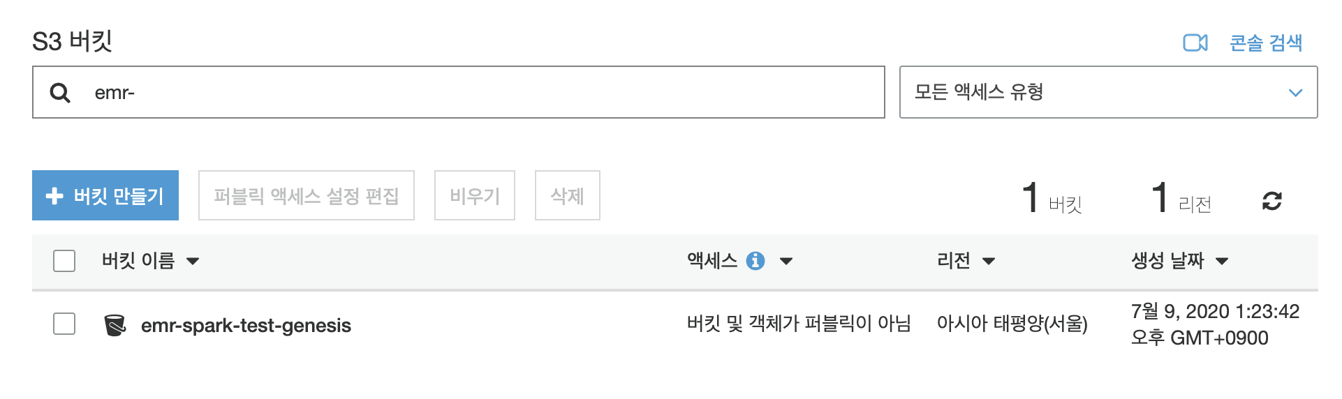 AWS에는 EMR이라고 불리는 빅데이터 플랫폼이 있습니다. EMR을 통해 스파크, 하이프, HBASE, 플링크 등 다양한 오픈소스 도구 셋트를 생성할 수 있습니다. 온프로미스로 직접 구축하는 것에 비해 매우 빠른 속도로 구축할 수 있으며 AWS에 따르면 온프로미스에서 구축하는 비용에 50%로 사용할 수 있다고 합니다. 오늘은 S3에 저장된 데이터를 스파크로 처리하기 위해 소규모 스파크로만 구성된 EMR클러스터를 생성해보겠습니다.