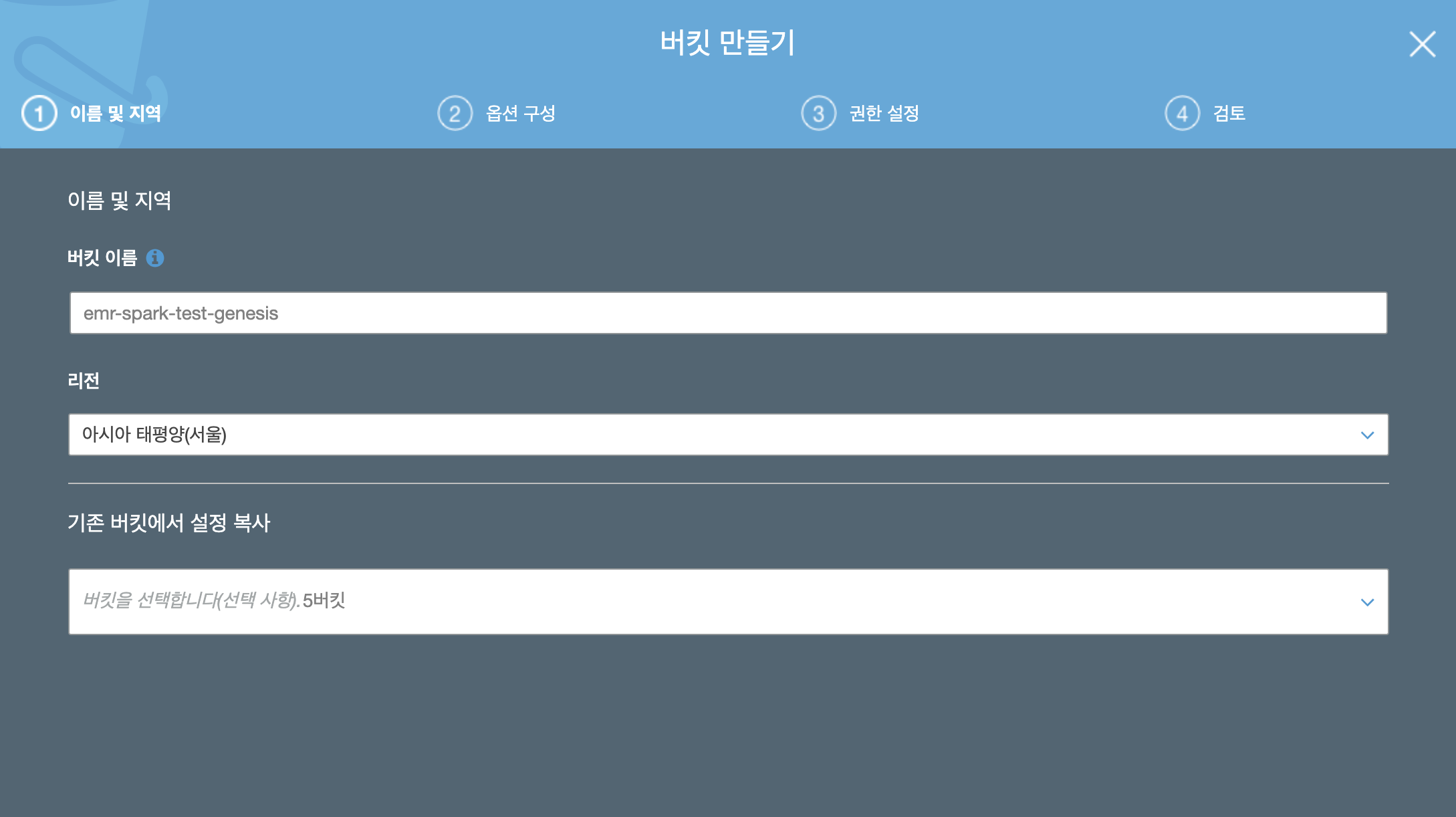 AWS에는 EMR이라고 불리는 빅데이터 플랫폼이 있습니다. EMR을 통해 스파크, 하이프, HBASE, 플링크 등 다양한 오픈소스 도구 셋트를 생성할 수 있습니다. 온프로미스로 직접 구축하는 것에 비해 매우 빠른 속도로 구축할 수 있으며 AWS에 따르면 온프로미스에서 구축하는 비용에 50%로 사용할 수 있다고 합니다. 오늘은 S3에 저장된 데이터를 스파크로 처리하기 위해 소규모 스파크로만 구성된 EMR클러스터를 생성해보겠습니다.