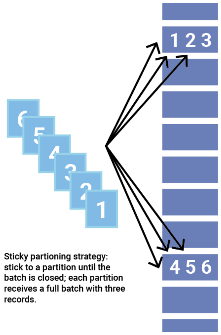 KIP-480 implements a new partitioner, which chooses the sticky partition that changes when the batch is full if no partition or key is present. Using the sticky partitioner helps improve message batching, decrease latency, and reduce the load for the broker. Some of the benchmarks which Justine Olshan discusses on the KIP show up to a 50% reduction in latency and 5–15% reduction in CPU utilization.