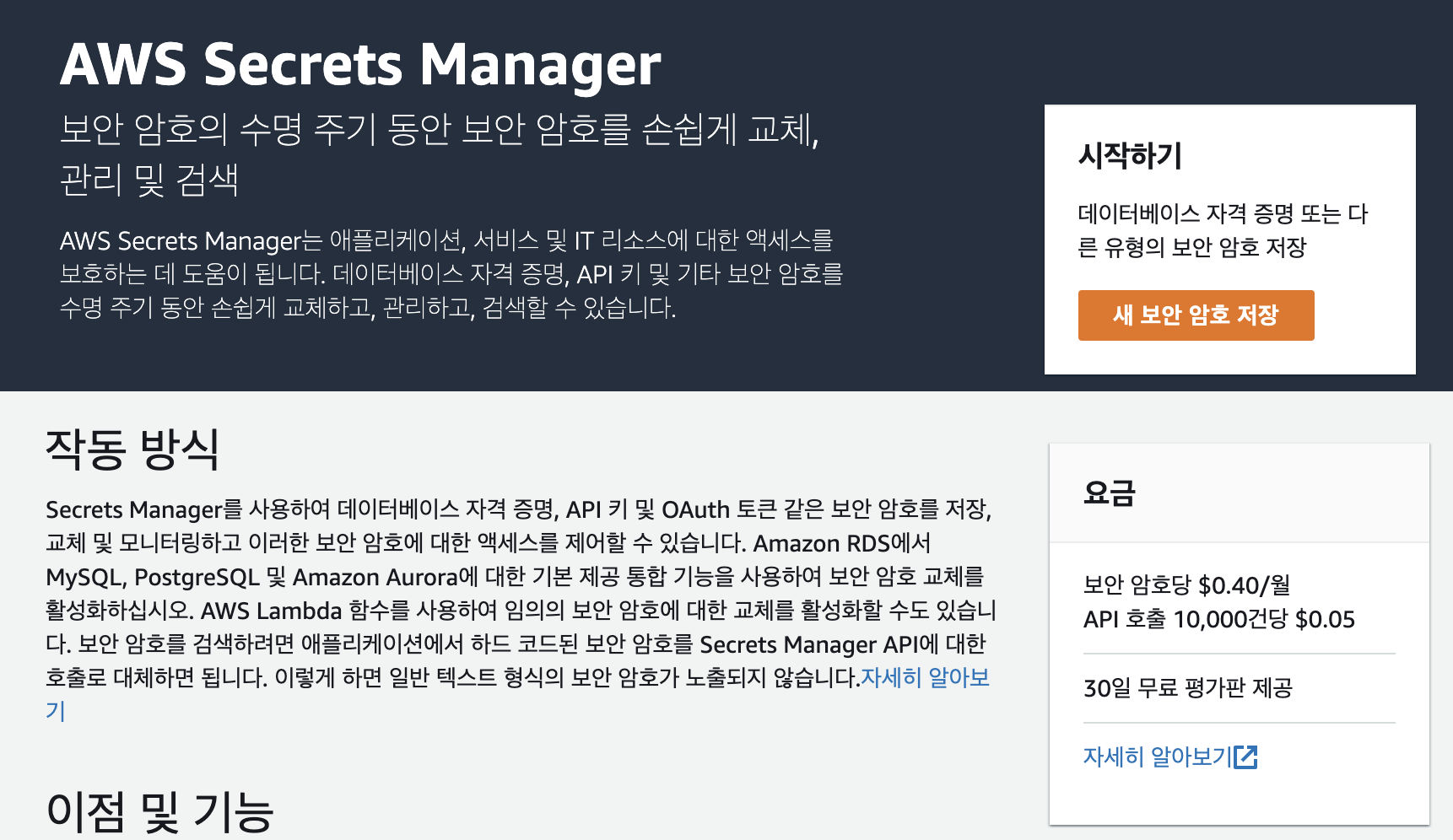 암호화 키를 코드에 직접 hard coding하는 방식은 보안에 매우 취약합니다. AWS를 사용하는 이상 AWS관련 컴포넌트를 활용하여 비밀 키/값을 관리하고 이를 EMR notebook에서 활용하는 방법을 알아보겠습니다.
