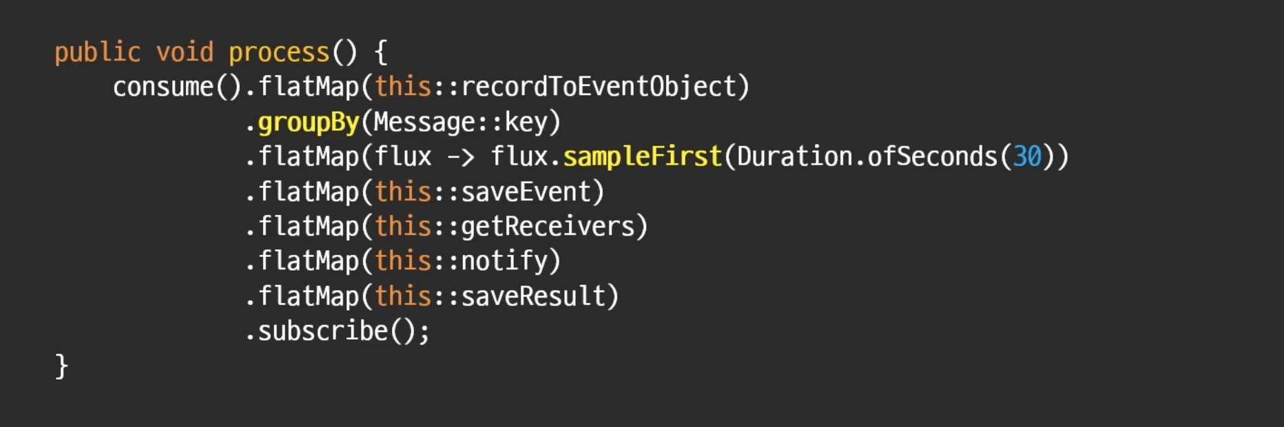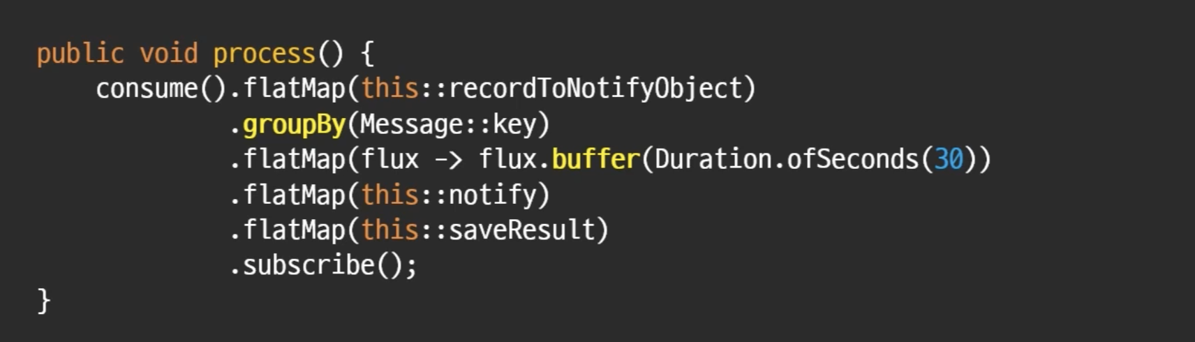 카프카 컨슈머와 프로듀서를 복합적으로 사용하면서 최대의 성능을 이끌어내기 위해 reactive 프로그래밍을 활용했다는점이 인상적이였다. 그리고 스프링 카프카 2.3.3부터는 관련 코드가 적용되었음을 확인할 수 있었다.