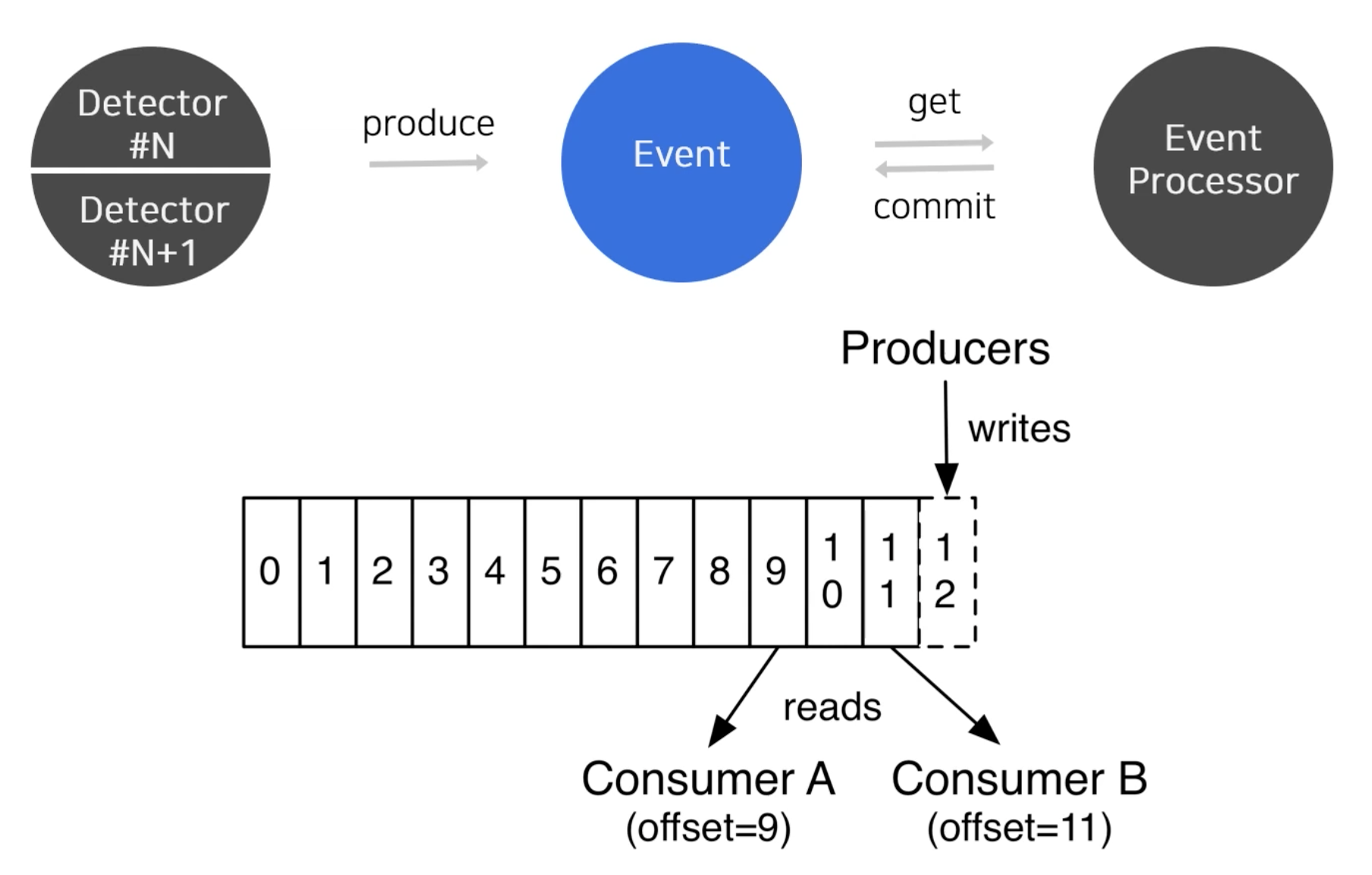 이벤트가 발생하면 디텍터는 메시지로 만들고 스트림으로 발행, 처리기는 이벤트 정보를 DB에 기록하고 담당자에게 통지를 발송하는 프로세스를 만드는게 주요 목표.
