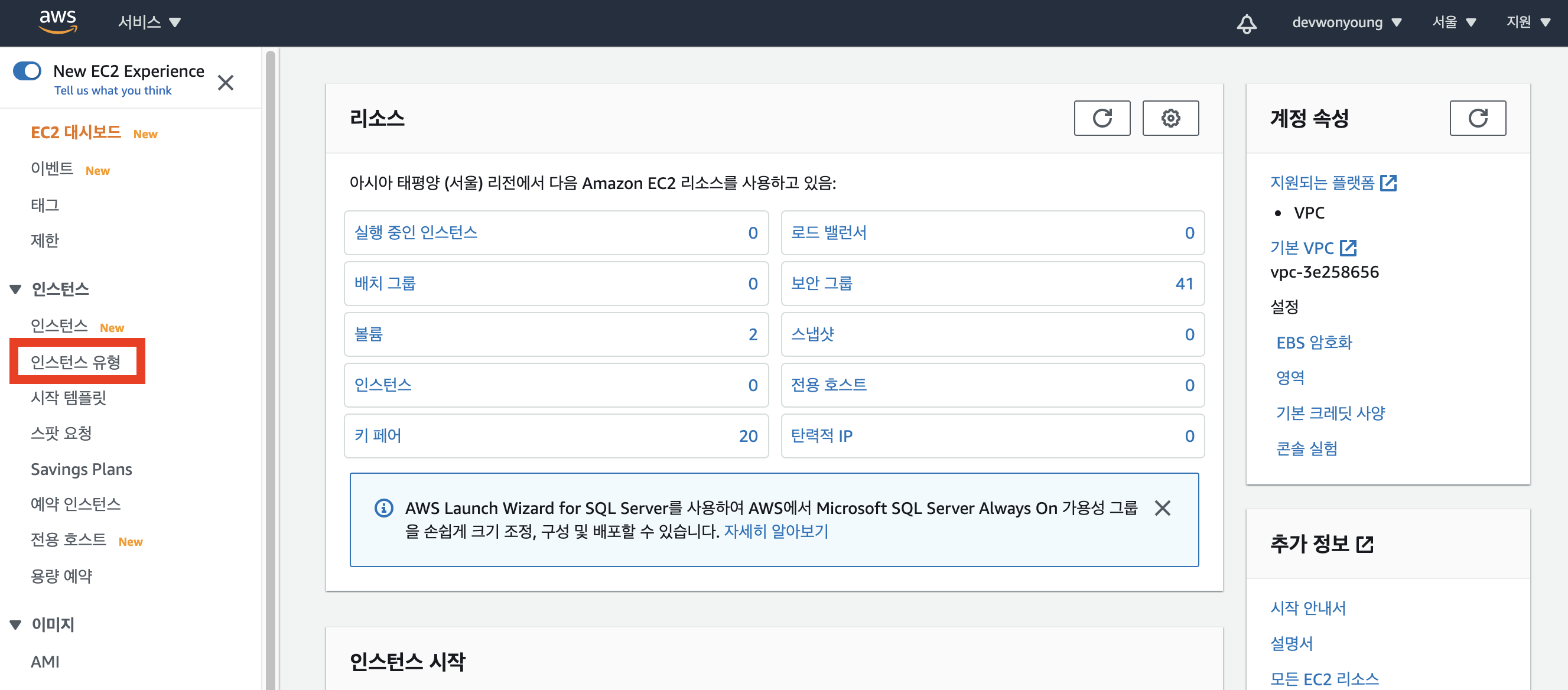 이 경우에는 ec2인스턴스가 가용영역에서 지원하는지 확인해야하는데 아래 단계를 거치면 됩니다.