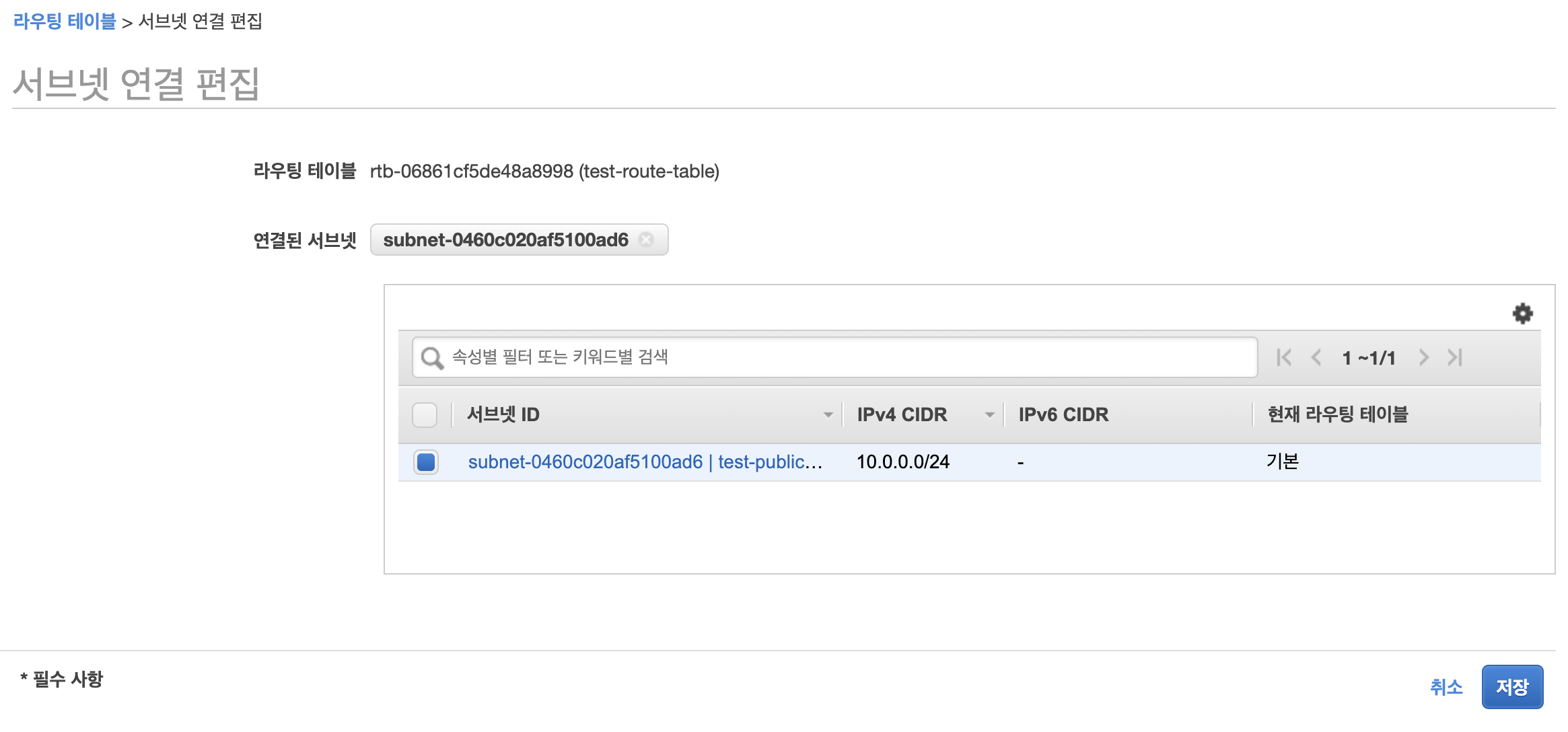 라우팅테이블에 서브넷도 추가해야하므로 서브넷 연결>서브넷 연결 편집으로 이동합니다.