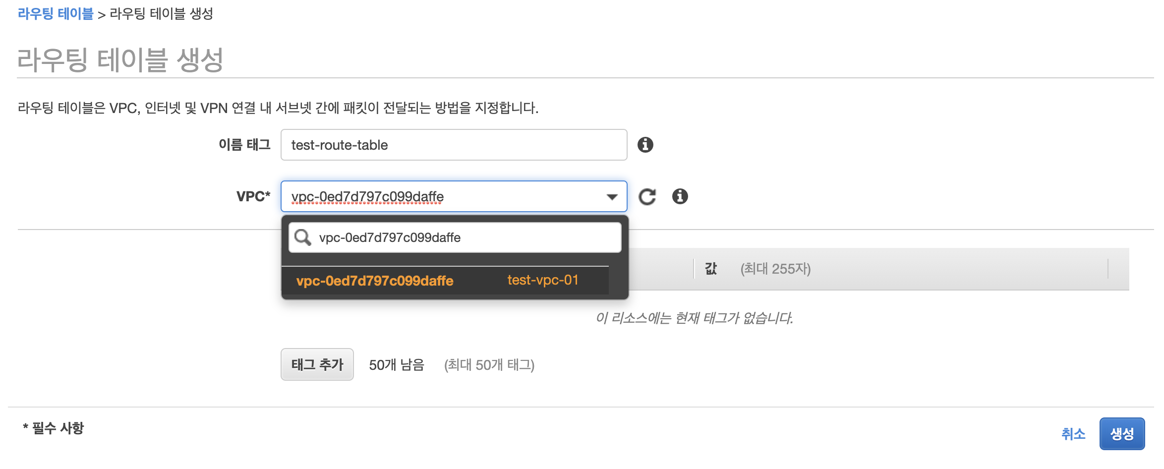 VPC에 맞는 라우팅 테이블을 생성합니다.