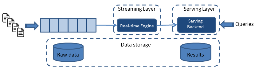 기존의 데이터 레이크는 배치성 데이터를 처리하는데 중점이 되었고 스트리밍 데이터를 처리해야 함에 따라 배치 데이터와 스트림 데이터를 융합하여 아키텍처를 만들어야 했습니다. 그렇게 나온 데이터 레이크 아키텍처가 바로 람다 아키텍처입니다. 람다 아키텍처는 배치 레이어와 스트림 레이어(또는 스피드 레이어)를 따로 두고 서빙 레이어를 통해 정합(merge)하고 쿼리(query)함으로서 전송 지연을 최소화하였습니다.