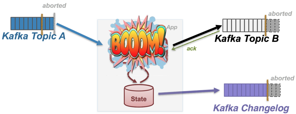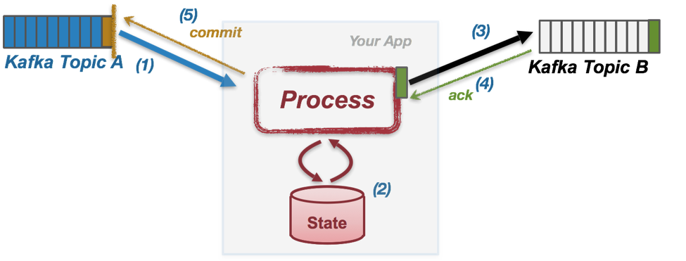 스트림 프로세싱에 있어 Exactly-once처리를 한다는 뜻은 각각의 레코드에 대해 처리 중 위에서 언급한 이슈가 발생하더라도 반드시 한번만 처리한다는 것입니다. 아파치 카프카의 스트림즈 처리에 있어 read(consume)-proccess-write(produce)를 한개의 트랜잭션으로 처리한다는 뜻이죠. 한번 읽어들인 레코드는 반드시 한번면 프로듀스 해야 완벽하다고 볼 수 있습니다.