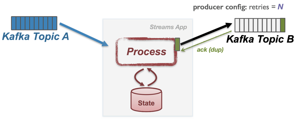 스트림 프로세싱에 있어 Exactly-once처리를 한다는 뜻은 각각의 레코드에 대해 처리 중 위에서 언급한 이슈가 발생하더라도 반드시 한번만 처리한다는 것입니다. 아파치 카프카의 스트림즈 처리에 있어 read(consume)-proccess-write(produce)를 한개의 트랜잭션으로 처리한다는 뜻이죠. 한번 읽어들인 레코드는 반드시 한번면 프로듀스 해야 완벽하다고 볼 수 있습니다.