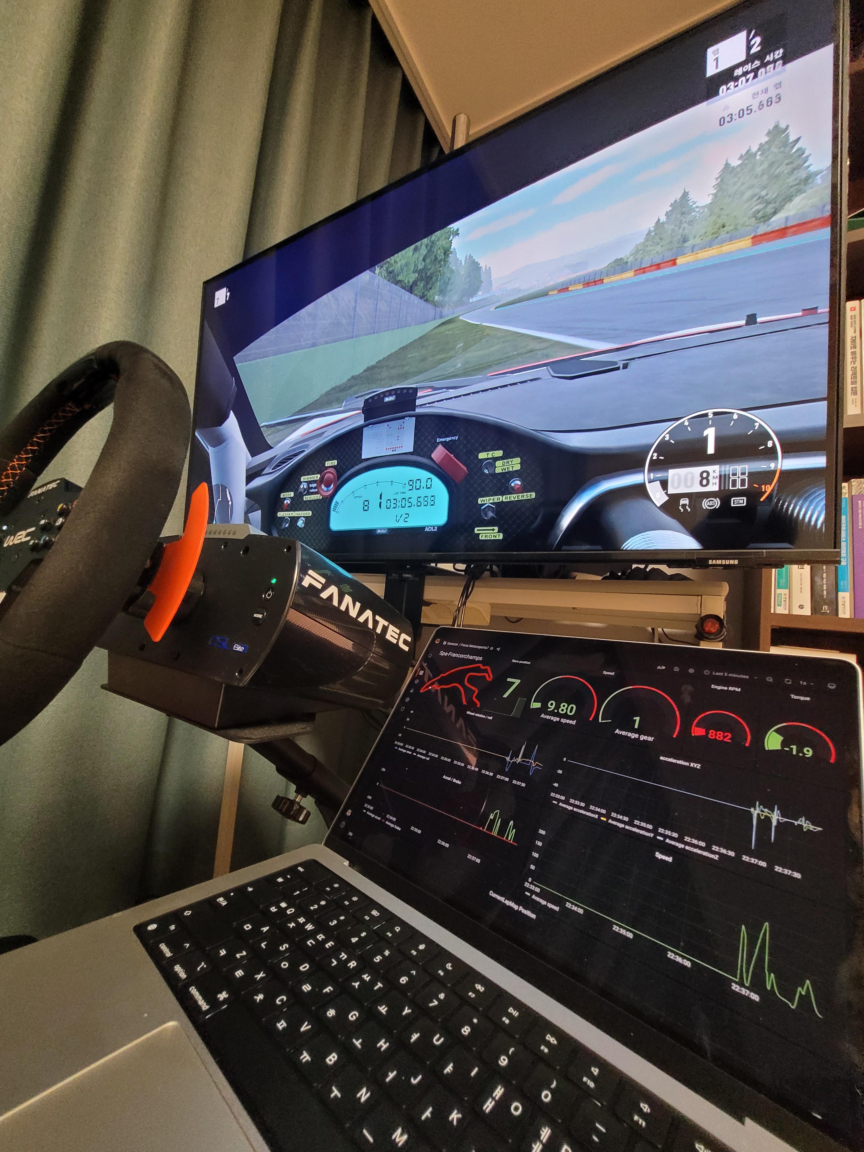 이렇게 수집, 시각화한 데이터는 레이스를 완료하고 난 뒤 레이싱카, 레이서, 트랙에 대한 분석을 수행하는데 활용할 수 있습니다. 제가 테스트로 달린 자동차와 트랙은 다음과 같습니다.