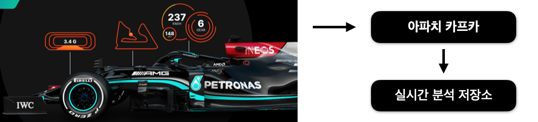 오늘은 카레이싱에서 자동차에서 출력되는 여러 지표들을 수집하는 데이터 파이프라인을 만들어 보겠습니다. F1, WRC를 비롯한 다양한 카레이싱 팀에서는 데이터의 수집과 활용이 우승으로 가는 지름길인 것은 이미 널리 알려져 있습니다. 2021 F1 의 월드 컨스트럭터 챔피언인 메르세데스-AMG 페트로나스 포뮬러 원팀은 데이터를 잘 활용하는 팀 중 하나입니다.