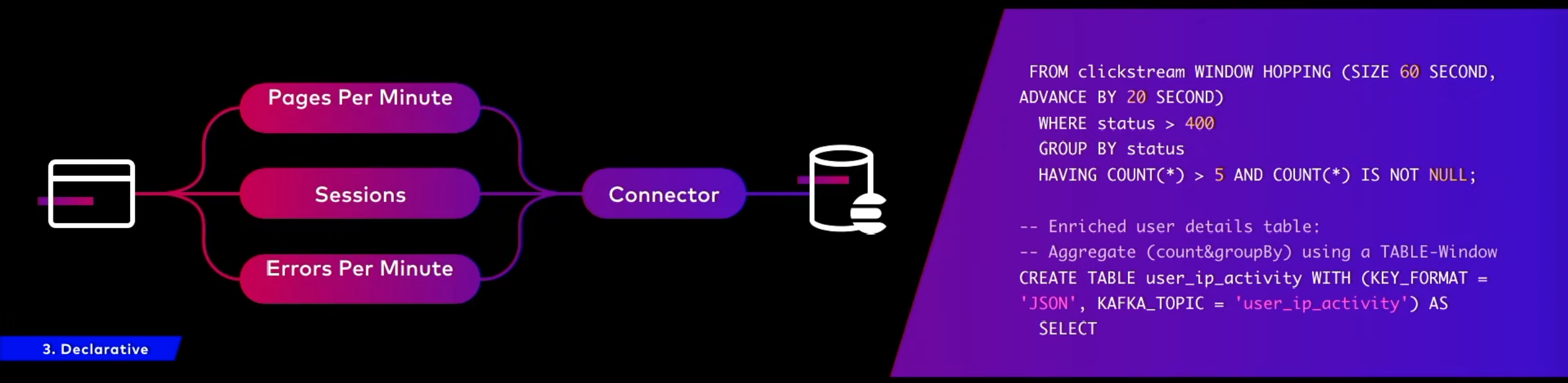 스트림도 SQL로 구성하여 뽑아 낼 수 있음. ksqlDB 광고.
