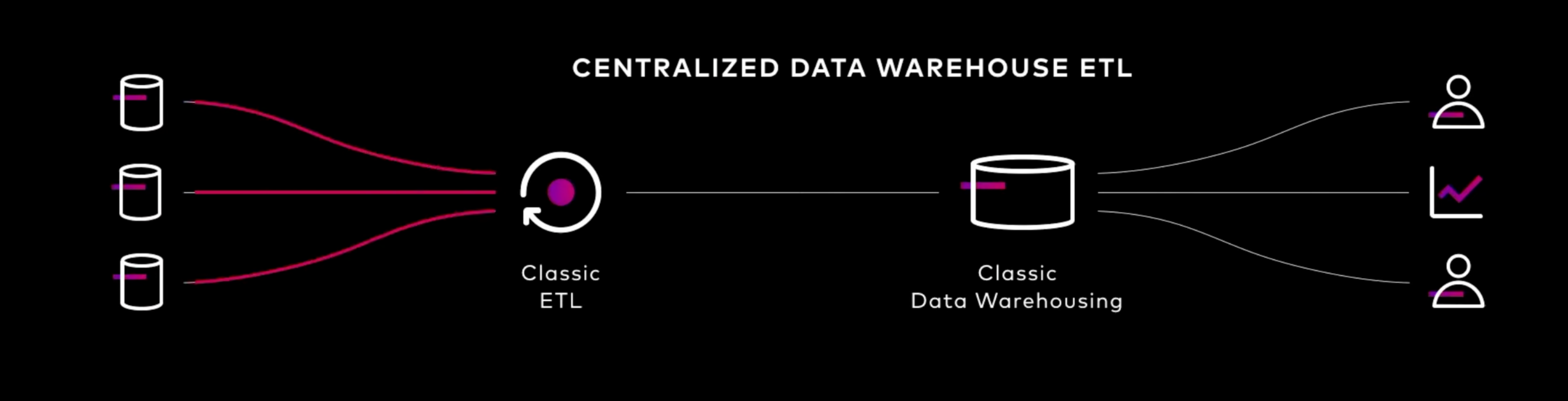 옛날 ETL은 상기 그림과 같이 단순하지만 복잡한 파이프라인을 운영하기 어려웠고 항상 중앙화된 데이터를 보아야만 했음. 실제로 우리가 비즈니스를 운영할 때는 매우 다양한 실시간/배치 데이터가 발생하고 있고 이를 상황에 따라 개별 추출하여 봐야할 경우도 있기 때문에 현대 비즈니스에는 부적합함.
