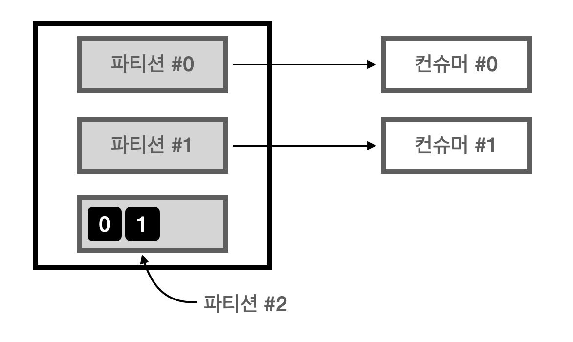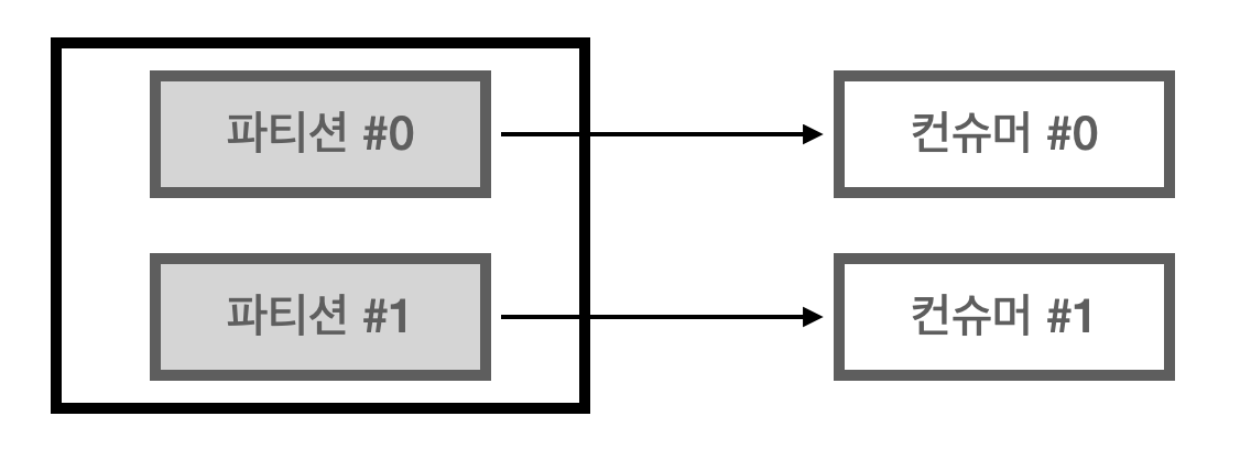 1) 파티션2개인 토픽에 컨슈머 2개가 연동되어 있는 그림
