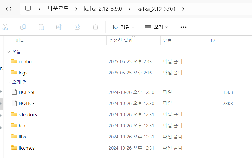 1) Apache kafka 3.9.0 다운로드 및 압축 풀기