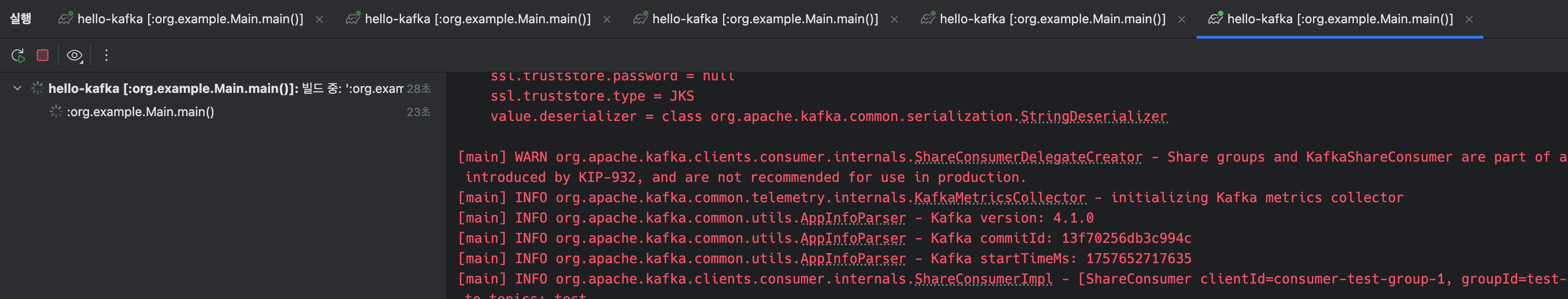 [main] WARN org.apache.kafka.clients.consumer.internals.ShareConsumerDelegateCreator - Share groups and KafkaShareConsumer are part of a preview feature introduced by KIP-932, and are not recommended for use in production.
